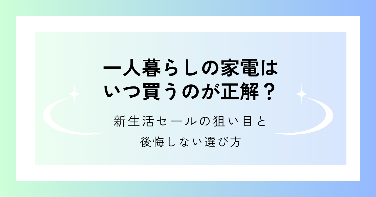 この記事では、一人暮らしの家電が安くなる時期や狙い目のセール、後悔しにくい容量の選び方まで分かりやすく解説します。